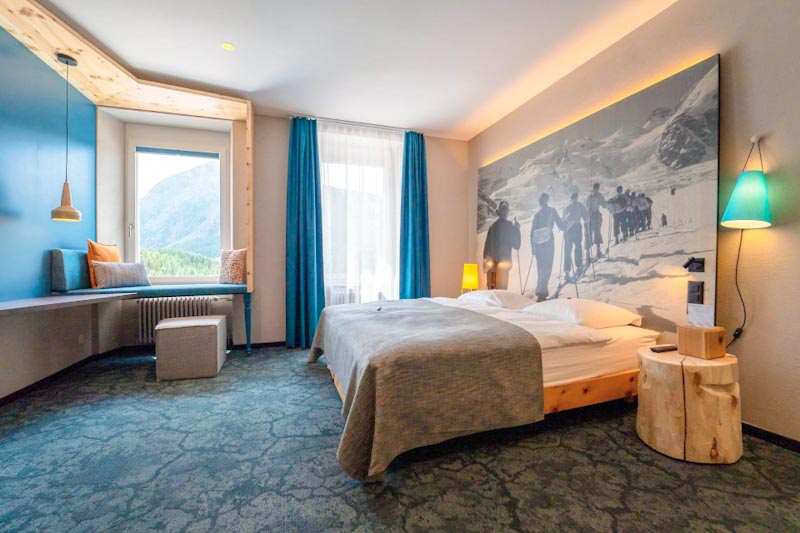 Die für uns reservierten Zimmer sind zeitgemäss, einfach und gleichzeitig komfortabel. Reduziert in der Einrichtung und mit dem warmen Charm von Arvenholz-Elementen verströmen die Zimmer eine sehr angenehme Atmosphäre. Hochwertige Betten unterstützen einen erholsamen Schlaf. Auf Wunsch & Anfrage stehen auch Zimmer und Suiten gehobenen Standards zur Verfügung.