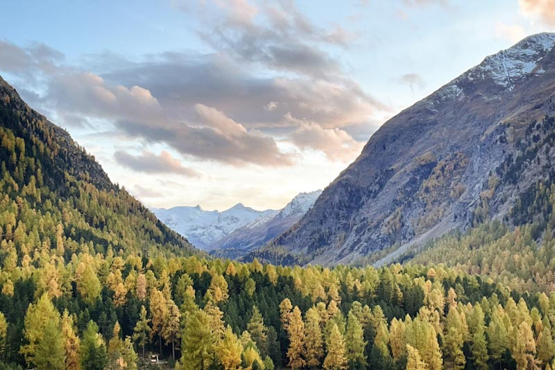 Der Stazerwald (God da Staz) ist ein ausgedehntes Waldgebiet in der Hochebene zwischen Pontresina und St. Moritz auf 1800 m ü. M.. Der Wald besteht aus z.T. Jahrhunderte alten Lärchen und Arven. Die gesundheitsförderliche Wirkung (Beruhigung Nervensystem, Stärkung Immunsystem, Regeneration Körper etc.) dieser an ätherischen Ölen reichen und wohlriechenden Bäume ist wohl bekannt. Im Herbst verfärben sich die Nadeln der Lärchen goldgelb und verwandeln diesen einzigartigen Wald in einen magischen, zauberhaften Ort von berührender Schönheit. Der Stazerwald ist ein Wald mit äusserst lieblicher Atmosphäre, ein Heilwald der perfekt ist um sich ganzheitlich zu erholen. Das Val Rosegg – ebenfalls mit Lärchen- & Arvenwald, dem Gletscherbach, den Bergen und dem Gletscher im Hintergrund kann mit Worten kaum beschrieben werden. MAGIC!