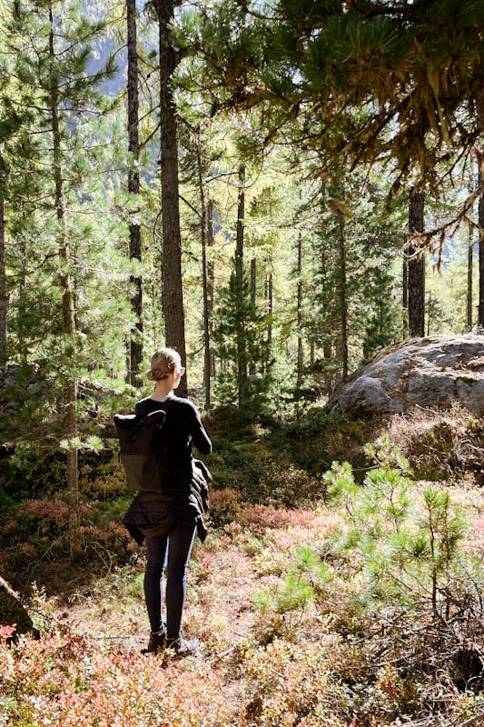 Durch tägliche Meditationen werden heilsame Geistes- und Herzensqualitäten kultiviert und die Art und Weise des in Beziehung seins mit sich, dem Leben und der Natur erforscht. Beim Waldbaden tauchen wir mit allen Sinnen ein in die herbstlichen Arven- und Lärchenwälder und erfahren deren erdende und wohltuende Wirkung.