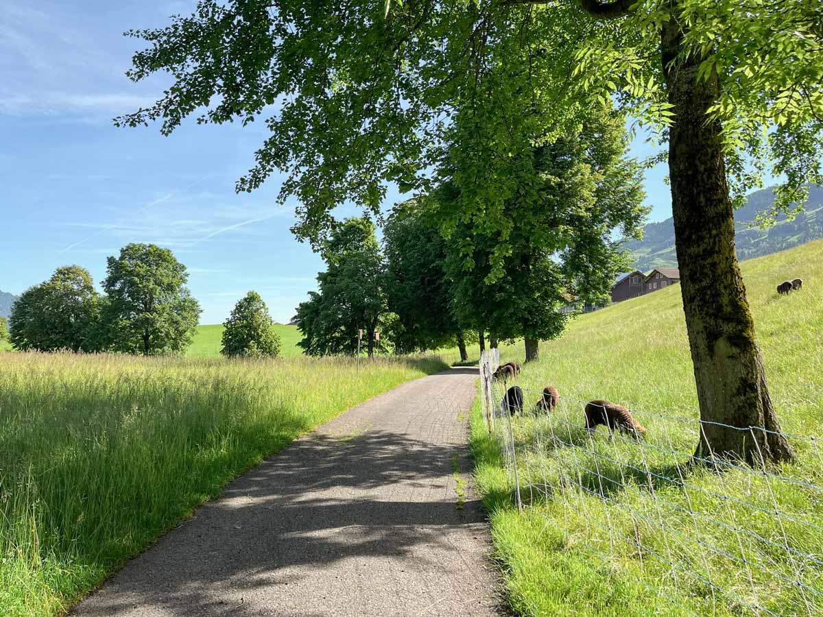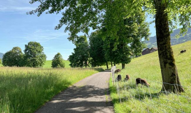 Ca. 15min Fussweg (Feldweg oder Strasse) ab Busstation St. Niklausen „Alte Post“ oder „Alpenblick“