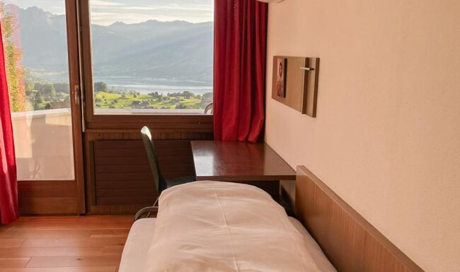 – CHF 890.- Einzelzimmer Economy (Mit Balkon, See- & Bergblick, WC auf Etage) > VERFÜGBAR